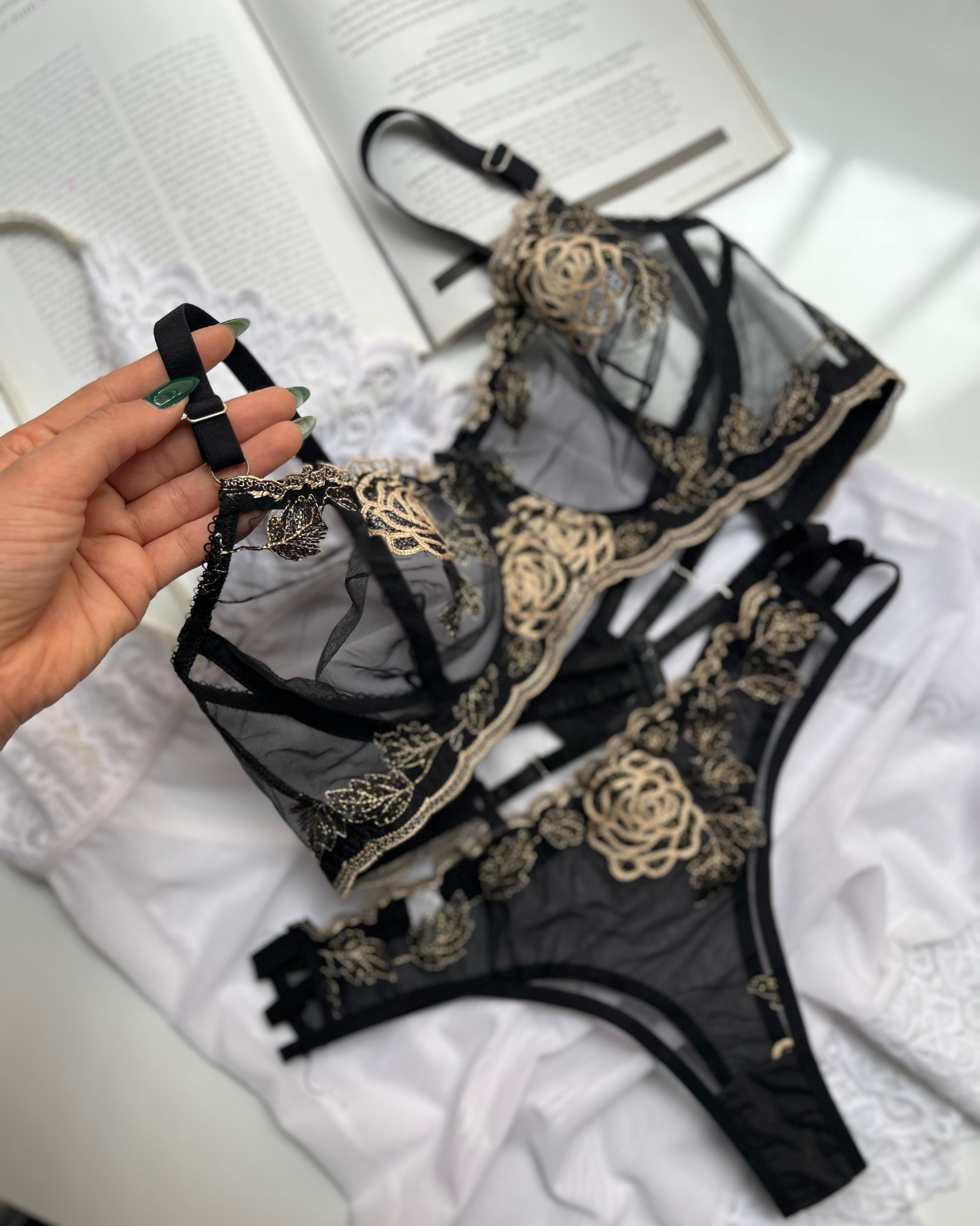 سوتین زنانه گیپور فنر دار تگ رنگ مشکی طلایی