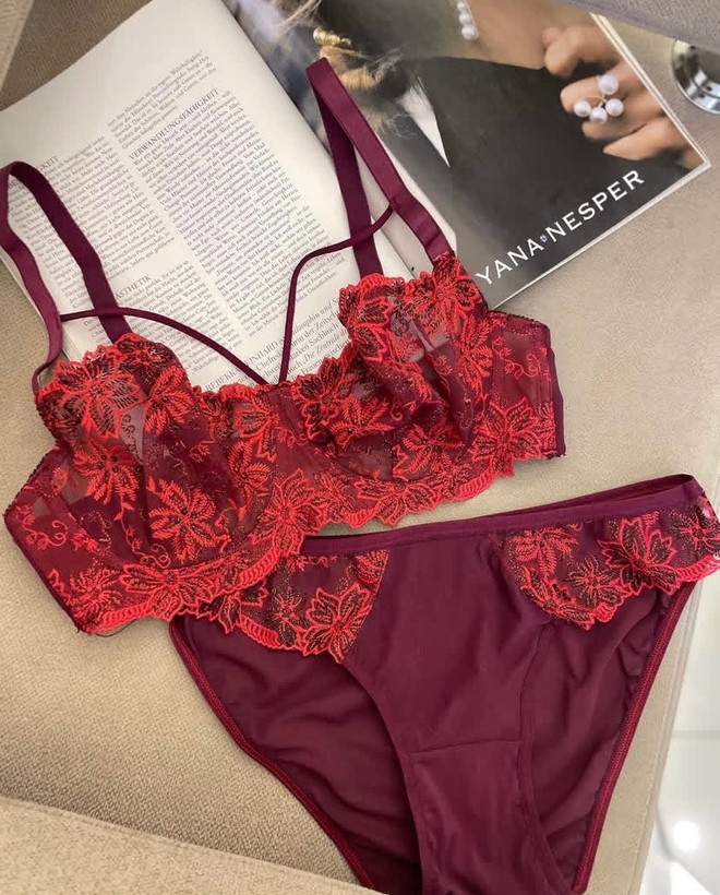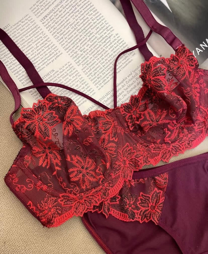ست شورت وسوتین زنانه گیپور فنر دار هارنسدار زرشکی قرمز۰۹
