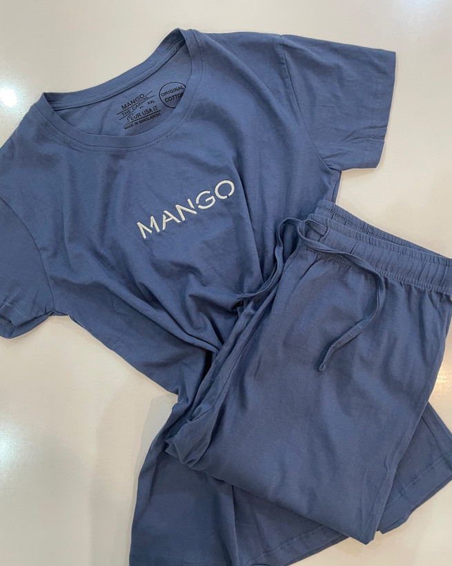 ست بلوز شلوار ساده زنانه طرح منگو ابی سرمه ای کد ۰۵