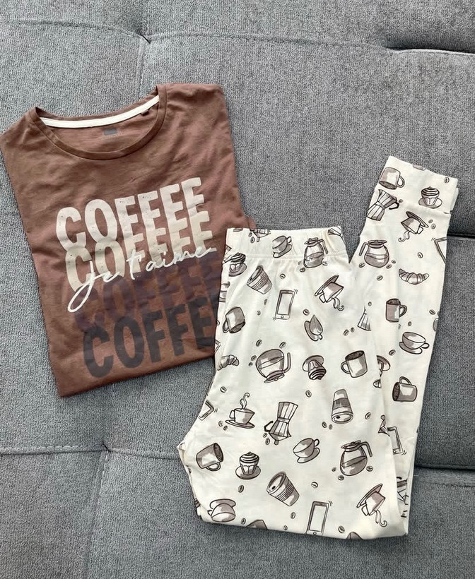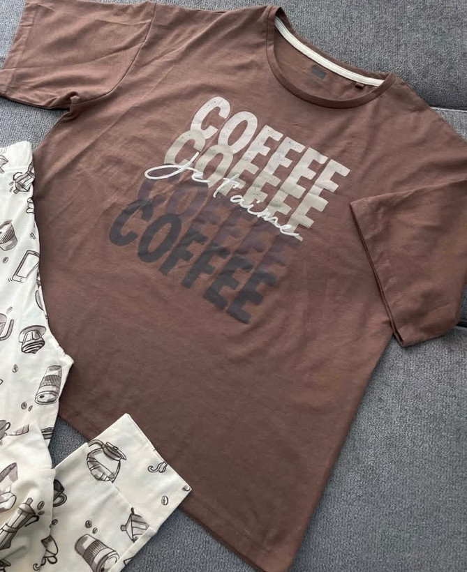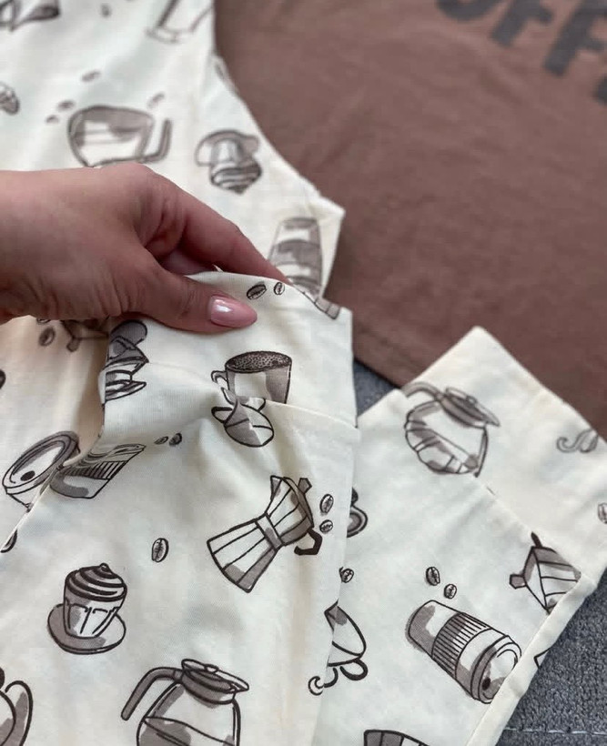 ست بلوز شلوار زنانه نخی طرح COFFEE