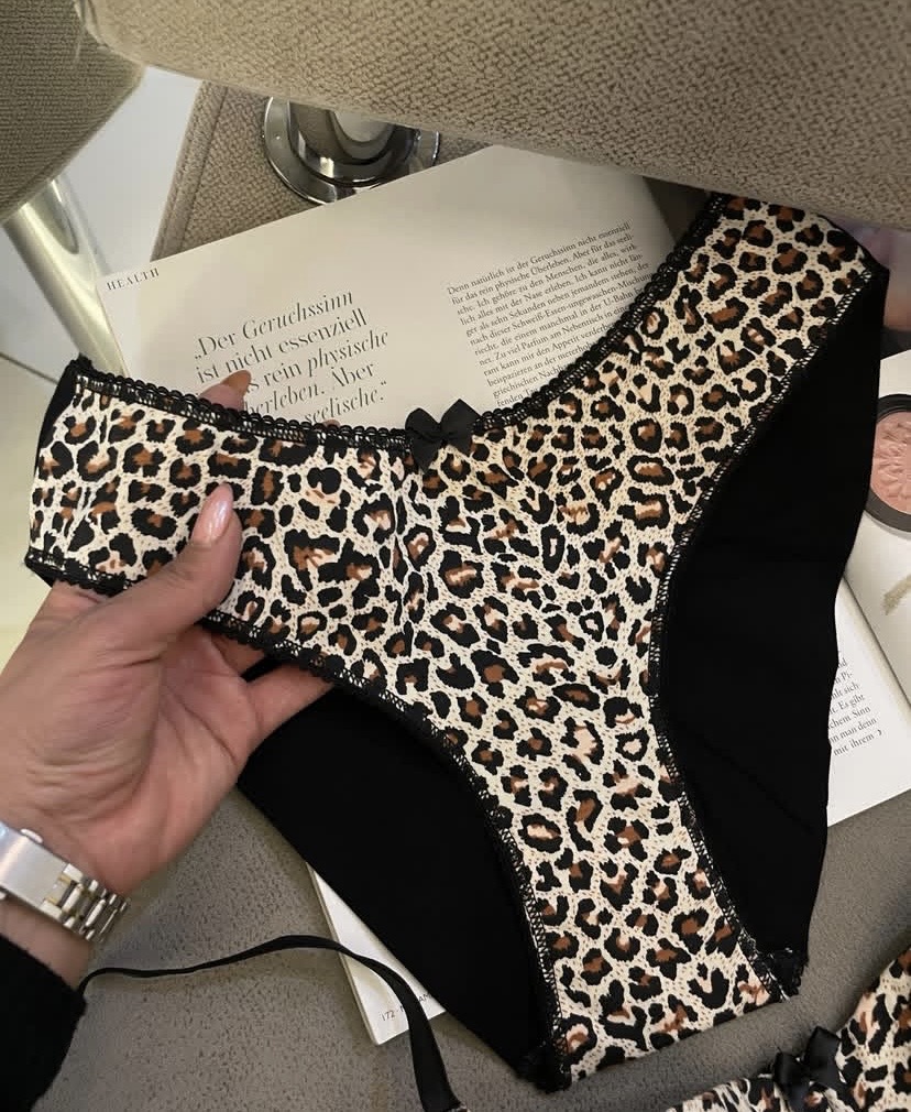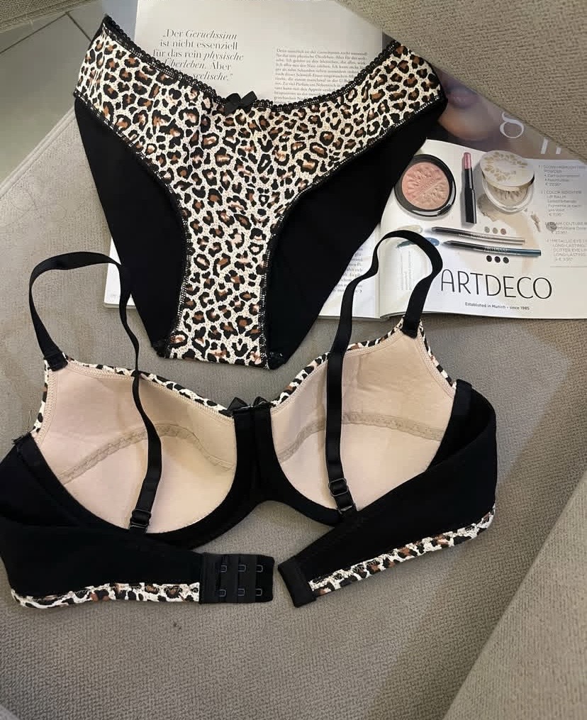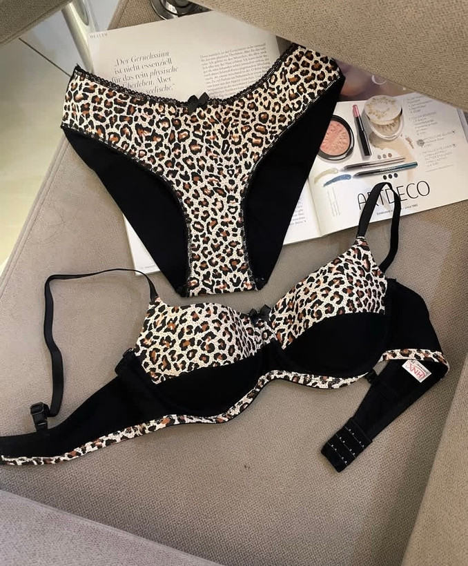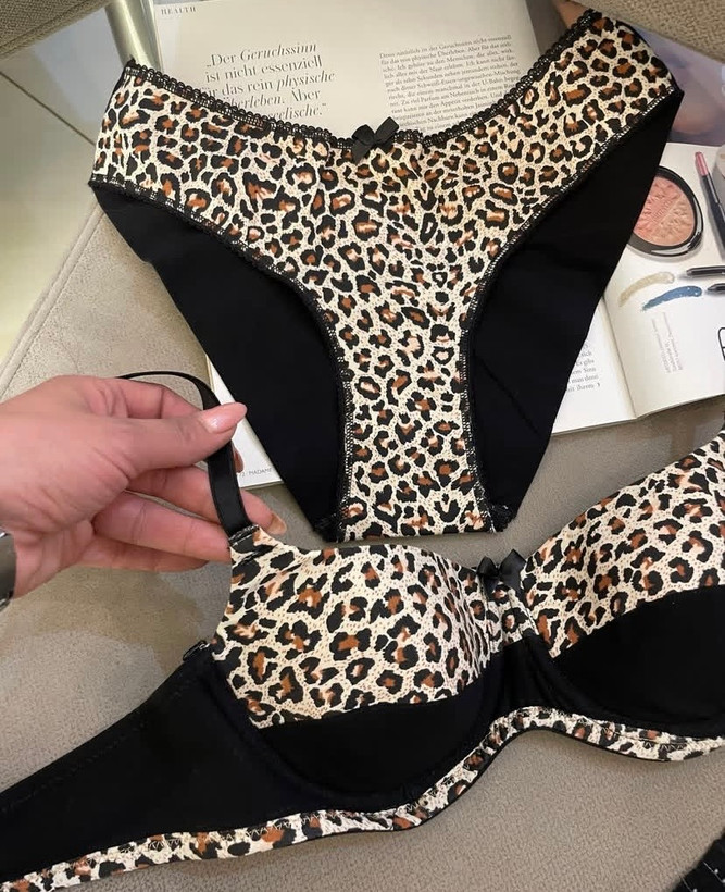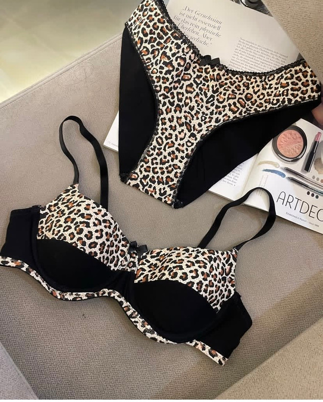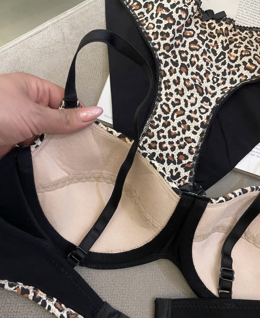 ست شرت و سوتین فنر دار زنانه طرح پلنگی کاپ نازک