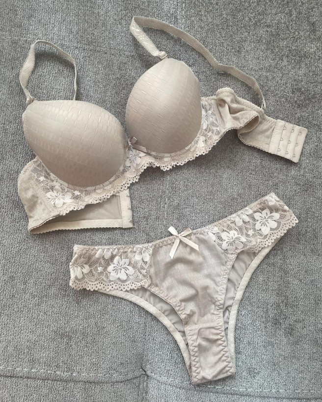 ست شرت وسوتین زنانه کاپ نازک کرم کاپ B