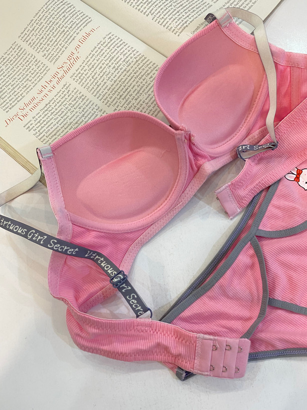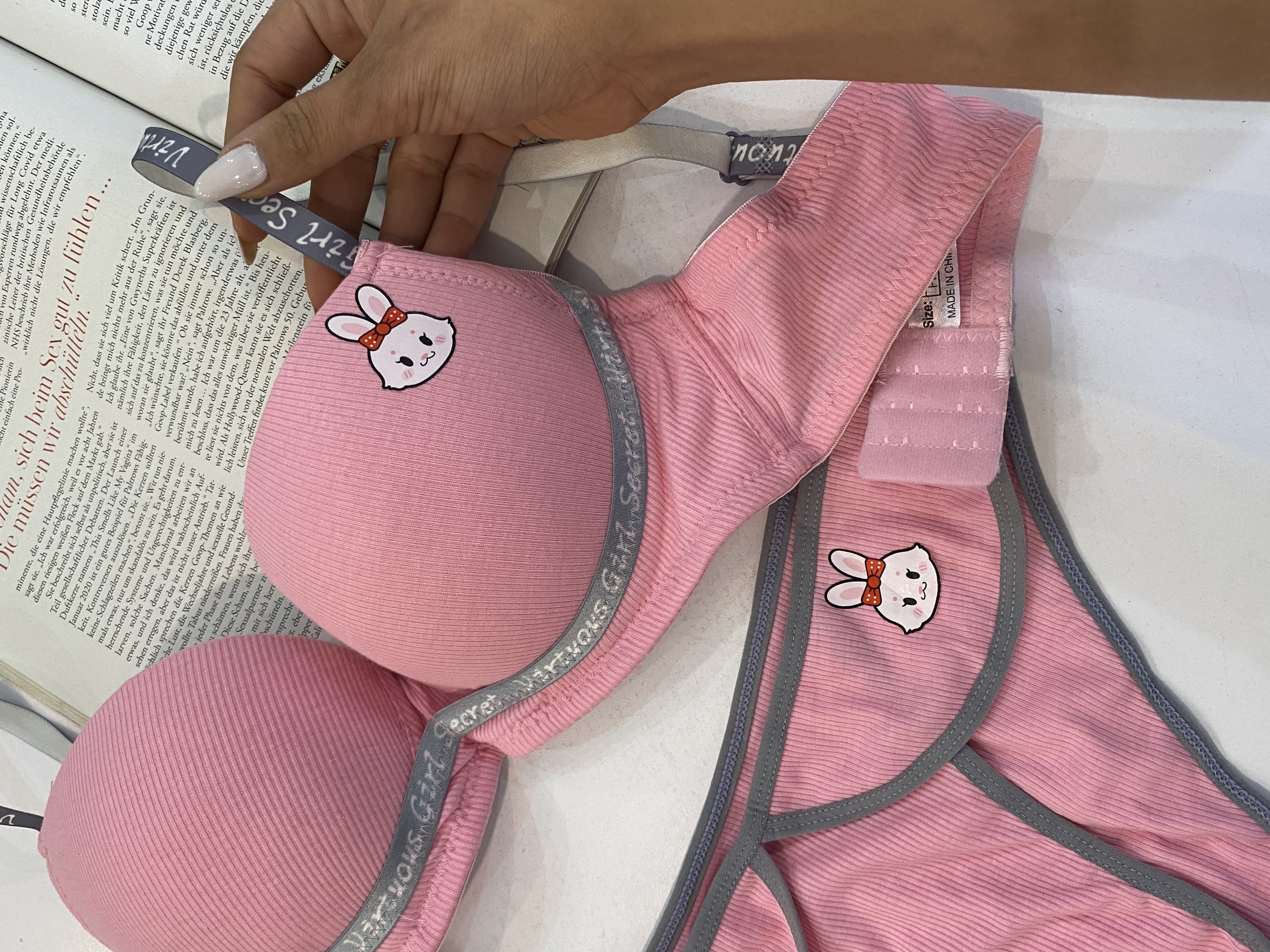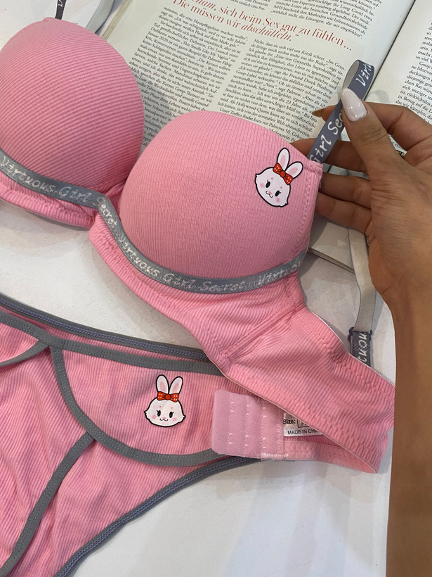 ست شرت و سوتین جک دار کاپ پر عروسکی دخترانه صورتی